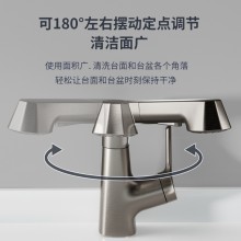 全銅升降抽拉式多功能槍灰色水龍頭衛(wèi)生間洗臉洗手盆黑色冷熱龍頭
